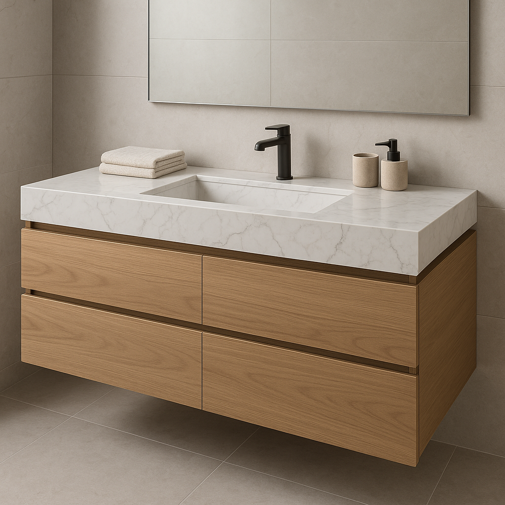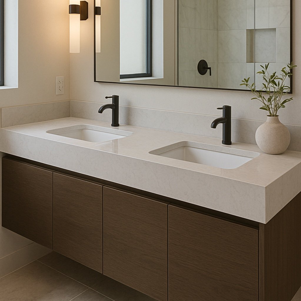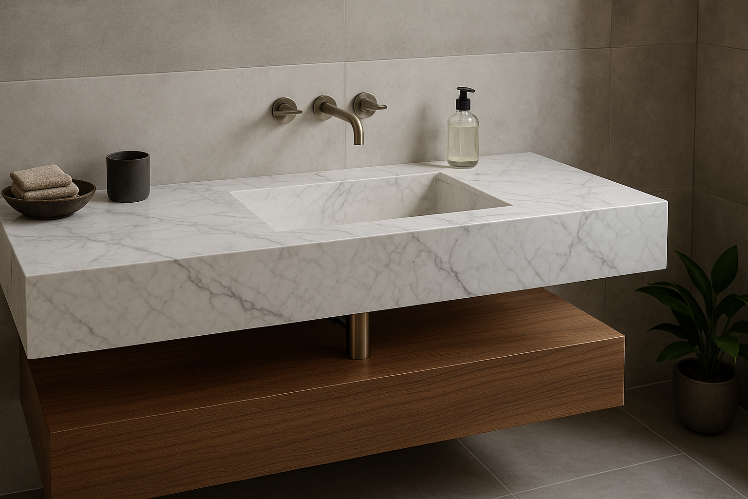 Usamos mármol, cuarzo, granito y piedra sinterizada para crear cubiertas, lavabos, muros y detalles que destacan por su elegancia, resistencia y diseño.